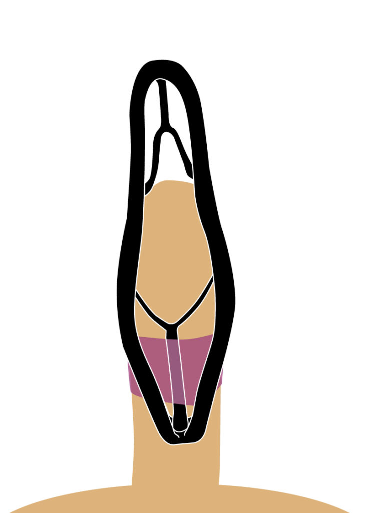 大陰唇フレーム上部の赤いマーク辺りにテープを巻くことによりサポート力が増します。